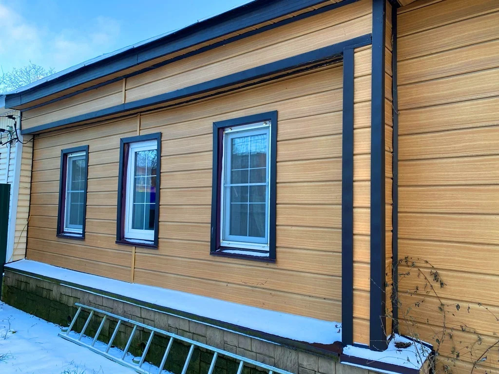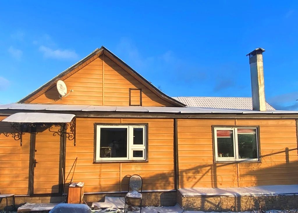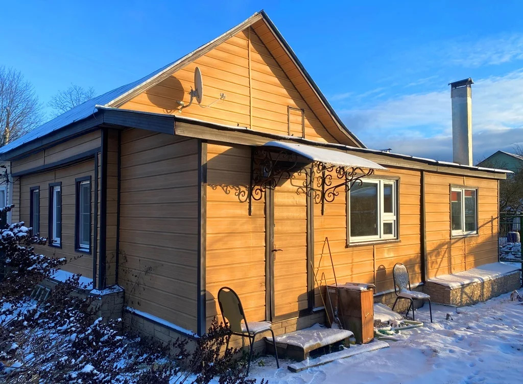 Дом построен из качественного бревна, обшит сайдингом, фундамент надёжный. Общая площадь 64 кв.м. (53 кв.м. + терраса 11 кв.м). Планировка: теплая терраса, кухня, санузел, проходная комната, основная комната. Есть 3 технических подпола, вода весной в них не стоит.
